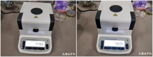 1. 復位儀器,待儀器冷卻至40℃以下后,再取4g左右玉米面均勻鋪在樣品盤上,重復上述測試步驟;測試結束后得出第二組數據,顯示樣品的水分含量為46.95%;數據基本相同誤差僅為0.07%,表示測試結果可靠,可重復性好。