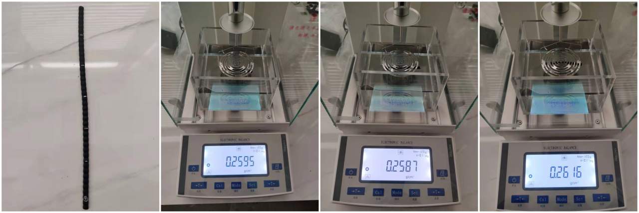 發(fā)泡材料密度較小,在有限的測試空間的前提下必然只能采取較小的測試重量,但是測試重量與測試結(jié)果的準(zhǔn)確性息息相關(guān),過輕的質(zhì)量可能會使誤差數(shù)據(jù)變大。而客戶的需求是多樣的,這次的客戶需要我們測試最輕只有0.1g的樣品,看看我們的測試結(jié)果如何。