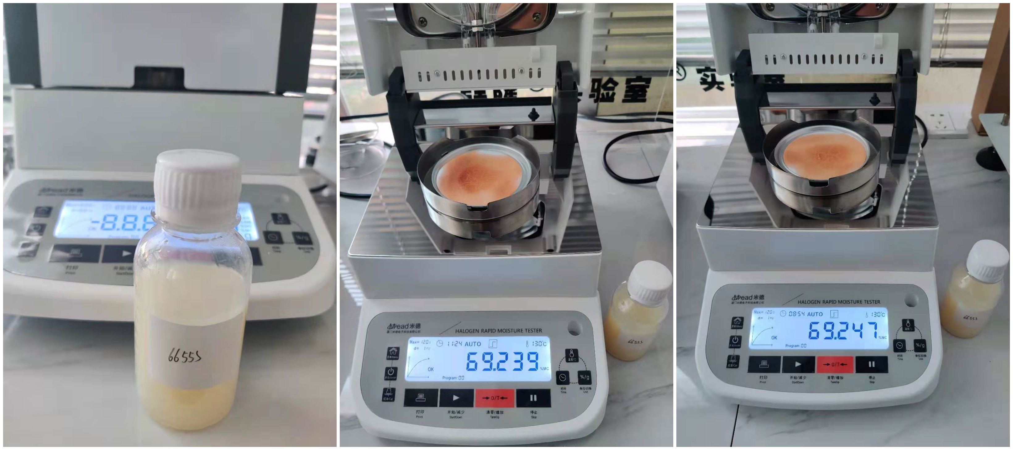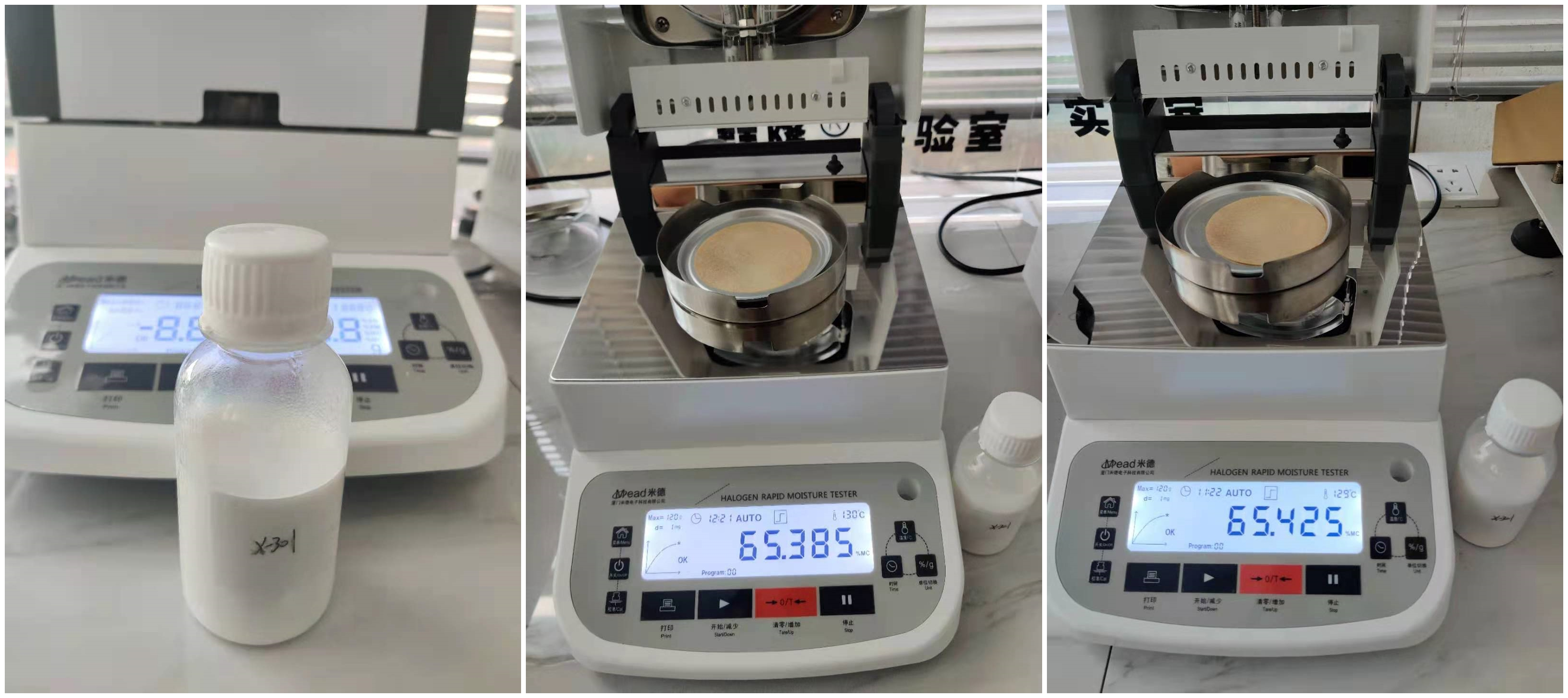 測試儀器:米德QL-720D(稱重精度0.001g,水分解析0.001%)