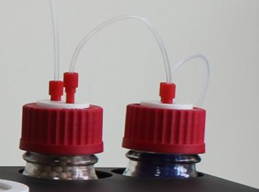 2、將氣源連接至加熱爐,將干燥樣品瓶裝入加熱槽,溫度設置為 150℃,流量調整為 50ml/min,吹掃樣品瓶和管路內可能存在水分,等待再次平衡。