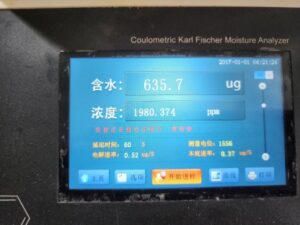 1、用膠水水分儀的加液功能向電解池中加入30ml左右無水溶劑。