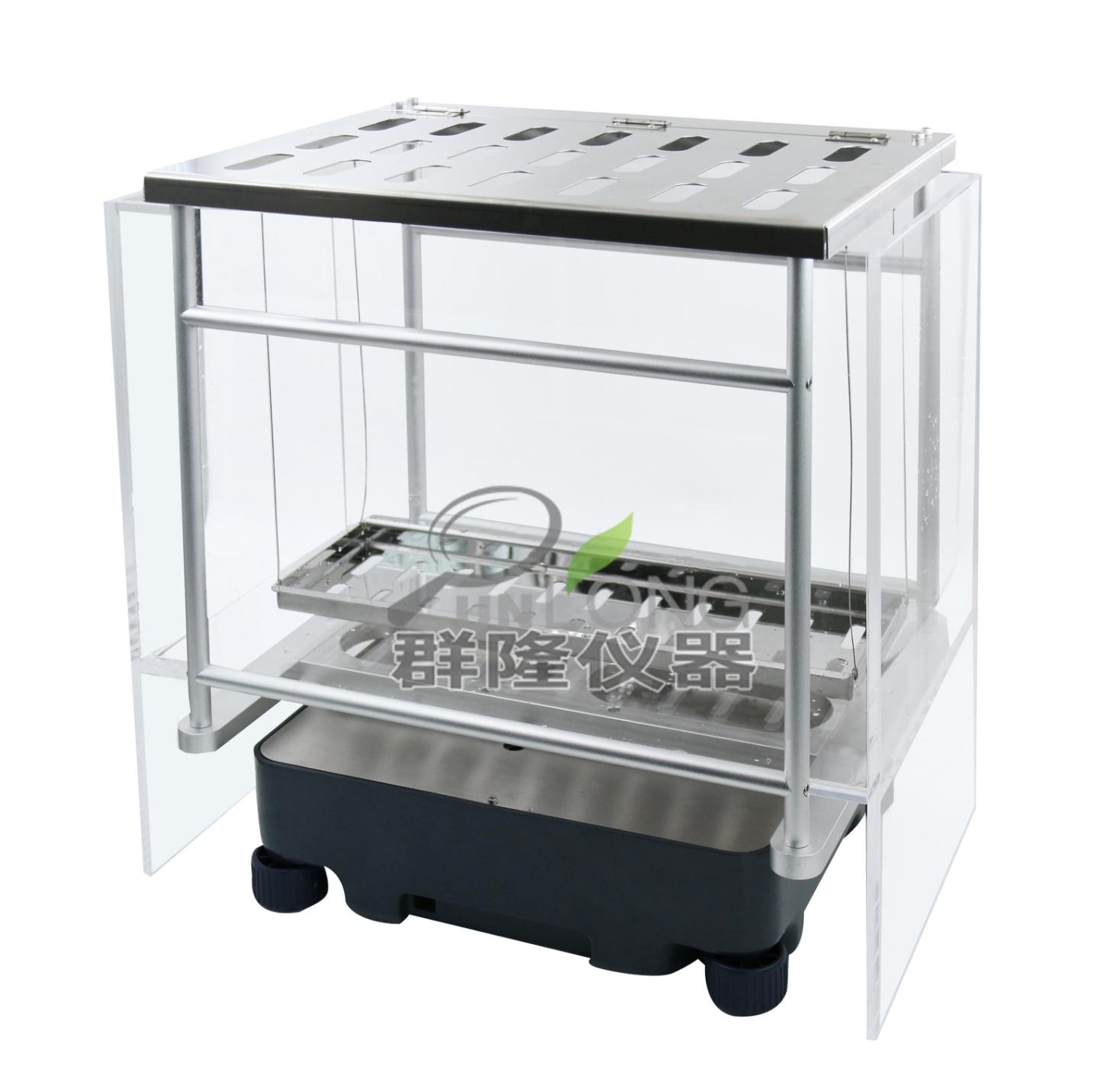 本機采用鋁制一體成型測量架,郵寄玻璃透明水槽,組裝方便,耐磨耐摔,防腐蝕,可清楚觀察樣品在介質中情況。