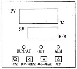 “OUT”指示燈:有加熱輸出此燈點(diǎn)亮,反之熄滅。