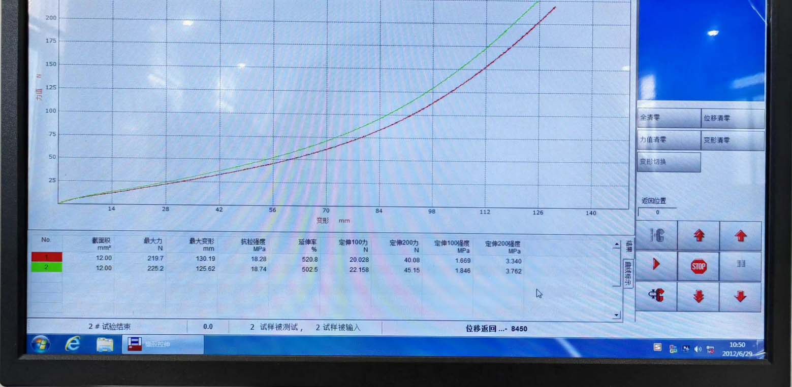 - 測試結束可自動存檔、手動存檔,測試完畢自動求算最大力量、上、下屈服強度、滯后環法、逐步逼近法、非比例延伸強度、抗拉強度、抗壓強度、任意點定伸長強度、任意點定負荷延伸、彈性模量、延伸率、剝離區間最大值、最小值、平均值、凈能量、折返能量、總能量、彎曲模量、斷點位移 x%荷重、斷點荷重 X%位移、等等。 數據備份:測試數據可保存在任意硬盤分區。