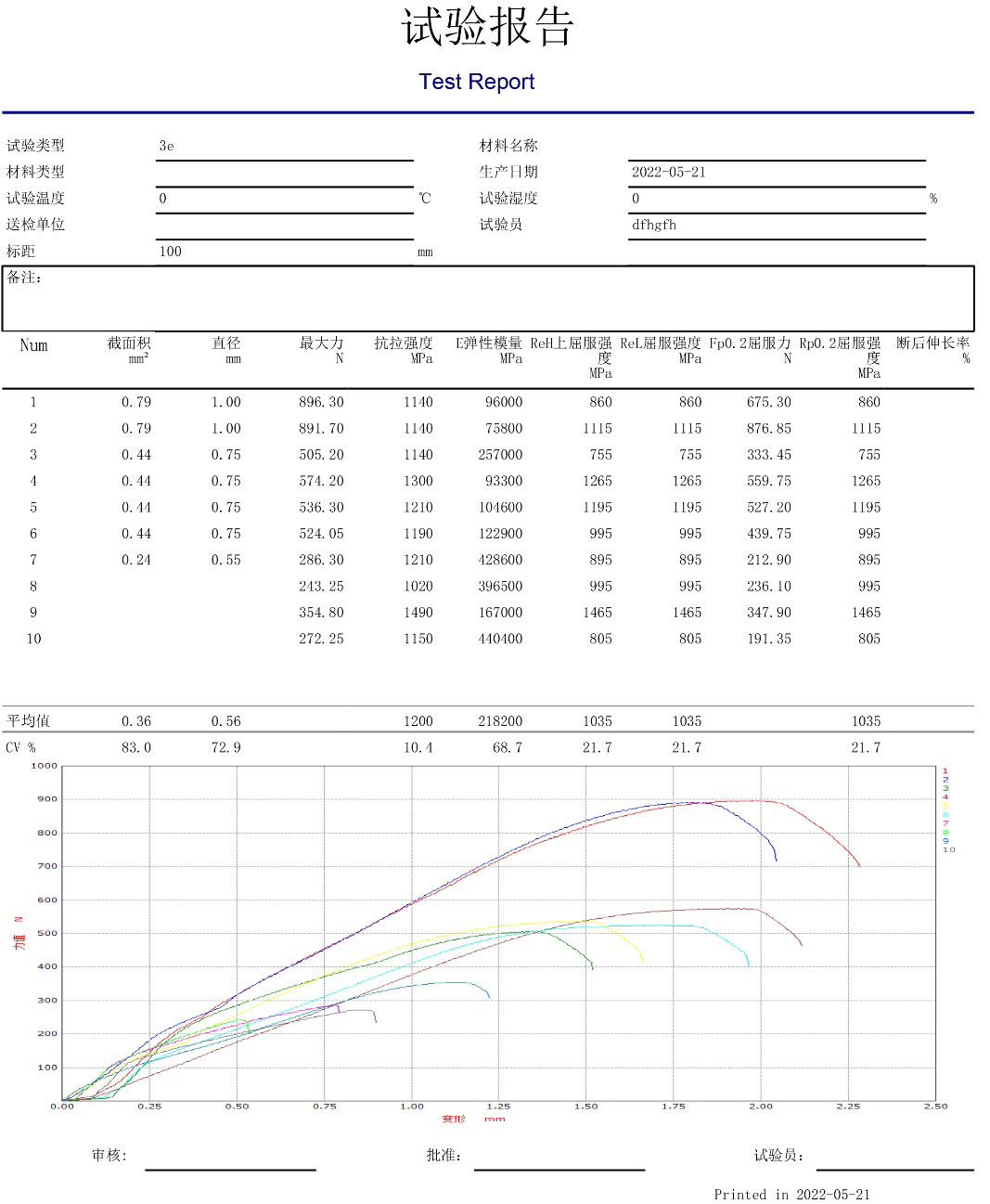 - 任意點力值 ???●任意點伸長率